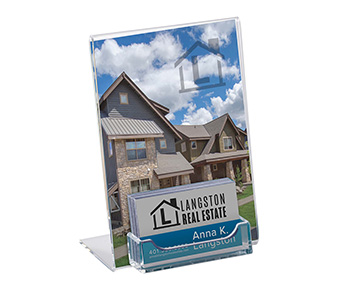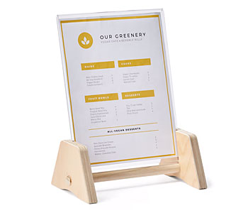 Countertop sign holders are normally smaller in size since there's not a lot of available real estate around to display them. Heat-formed acrylic stands come in many standard insert sizes, from 4" x 6" up to 11" x 17". We stock vertical, slant-back, curved, and double-sided sign holders. These displays are great for pricing in retail stores, important announcements, food & drink menus, the list goes on and on. Specialty sign holders paired with brochure holders provide a convenient way to offer takeaway literature at your place of business.